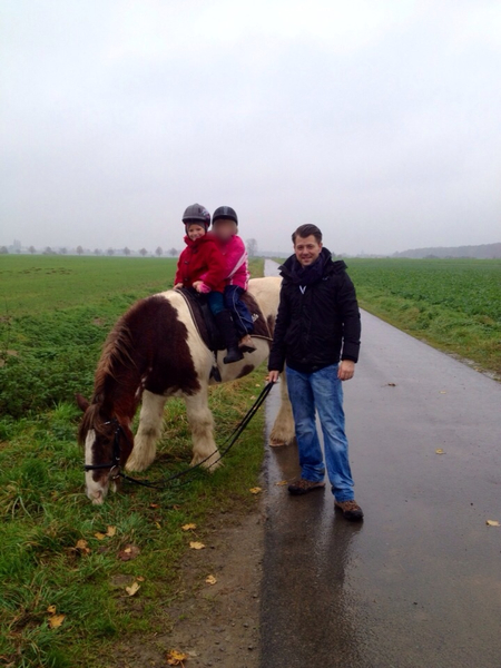 Das Mutter/Vater - Kind - Reiten richtet sich an die Kleinsten und ist empfohlen ab einen Alter von zwei - drei Jahren. Viele Kinder werden schon sehr früh von Pferden angezogen, sind aber aufgrund ihres jungen Alters noch nicht so weit, um selbststsändig mit einem Pferd umzugehen. Gibt man ihnen eine Hilfestellung durch einen Erwachsenen, sind auch die Kleinstem bereits in der Lage, ein Pferd zu pflegen und es zu versorgen. Auch in diesem Angebot liegt der Schwerpunkt nicht auf dem Begriff "Reiten", sondern auf dem Beziehungsaufbau zwischen Kind und Pferd und der Beziehungsstärkung zwischen Elternteil und Kind. "Gemeinsam sind wir stark" ist das Motto dieses Angebotes.